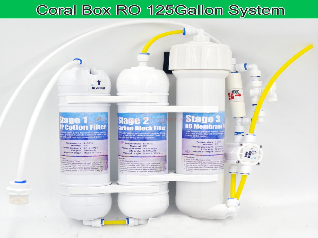 3 Stage System (First Stage 5micon PP Filter, Second Stage for Carbon Filter, Third Stage for RO)